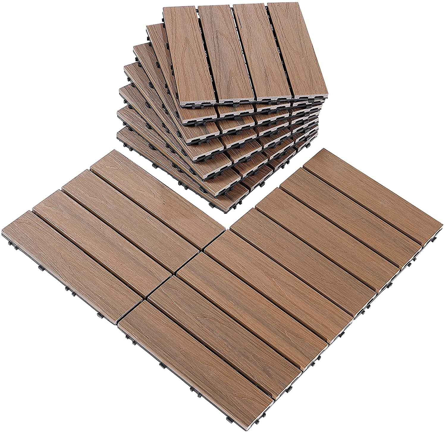 Pure Era Wood Composite Interlocking Floor Deck Tiles Outdoor 12 X12 10pcs 10 Sq Ft Dark Brown Oak Wood Grain Pattern Walmart Com